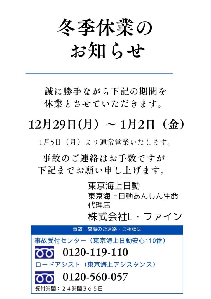 12月29日(月)より1月2日(金)まで休業とさせていただきます。