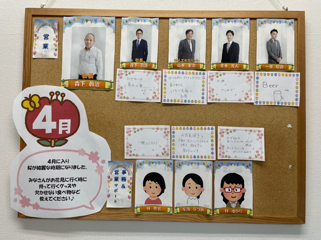 L・ファインでは、ご来店いただくお客様に少しでもスタッフのことを知っていただきたく、季節に合わせたアンケートを募集して店内のボードに貼って御覧いただいています。